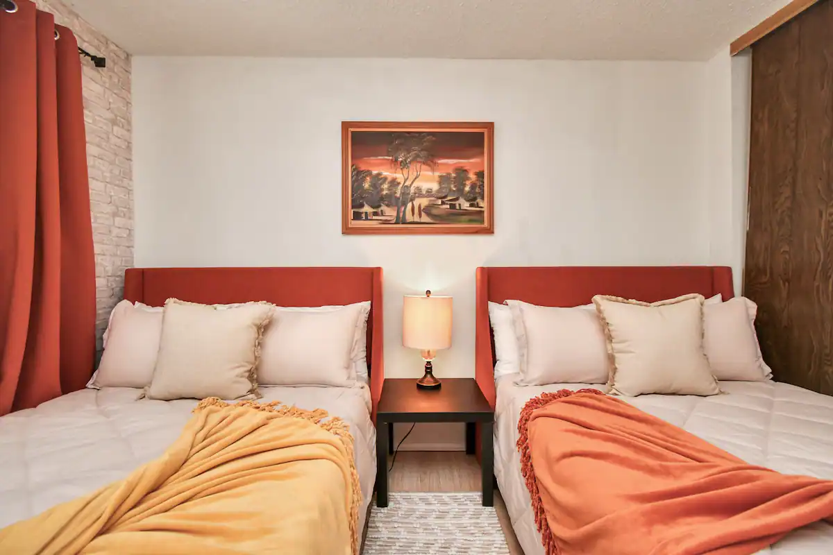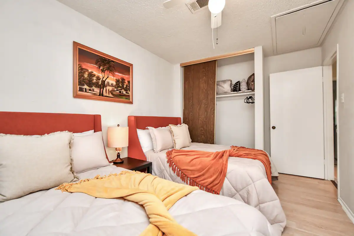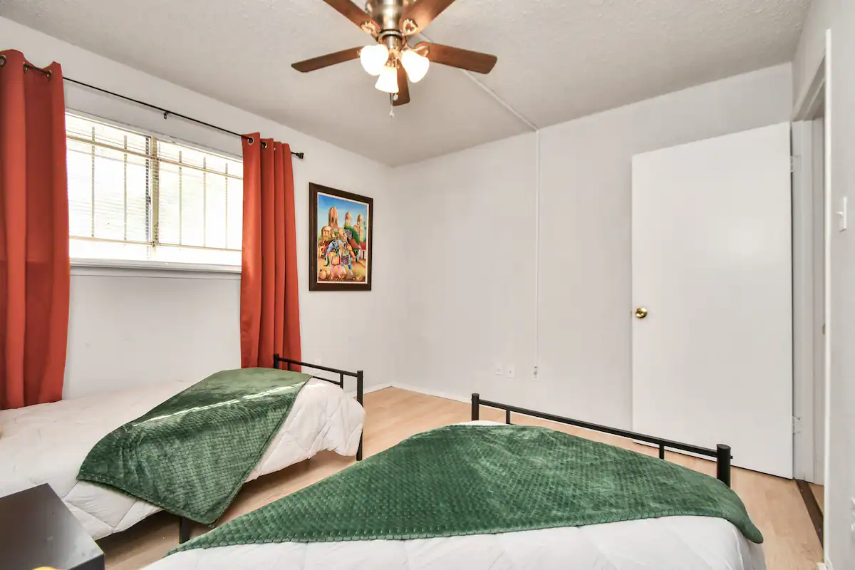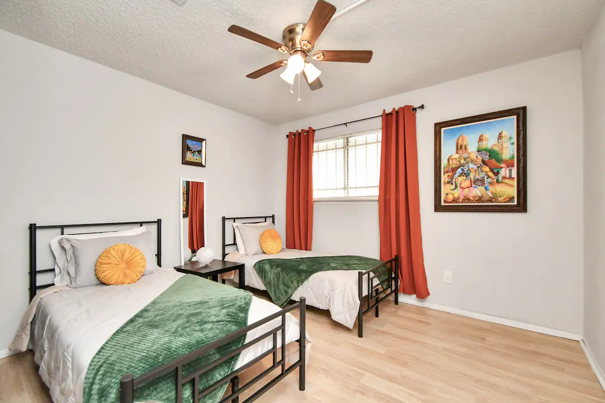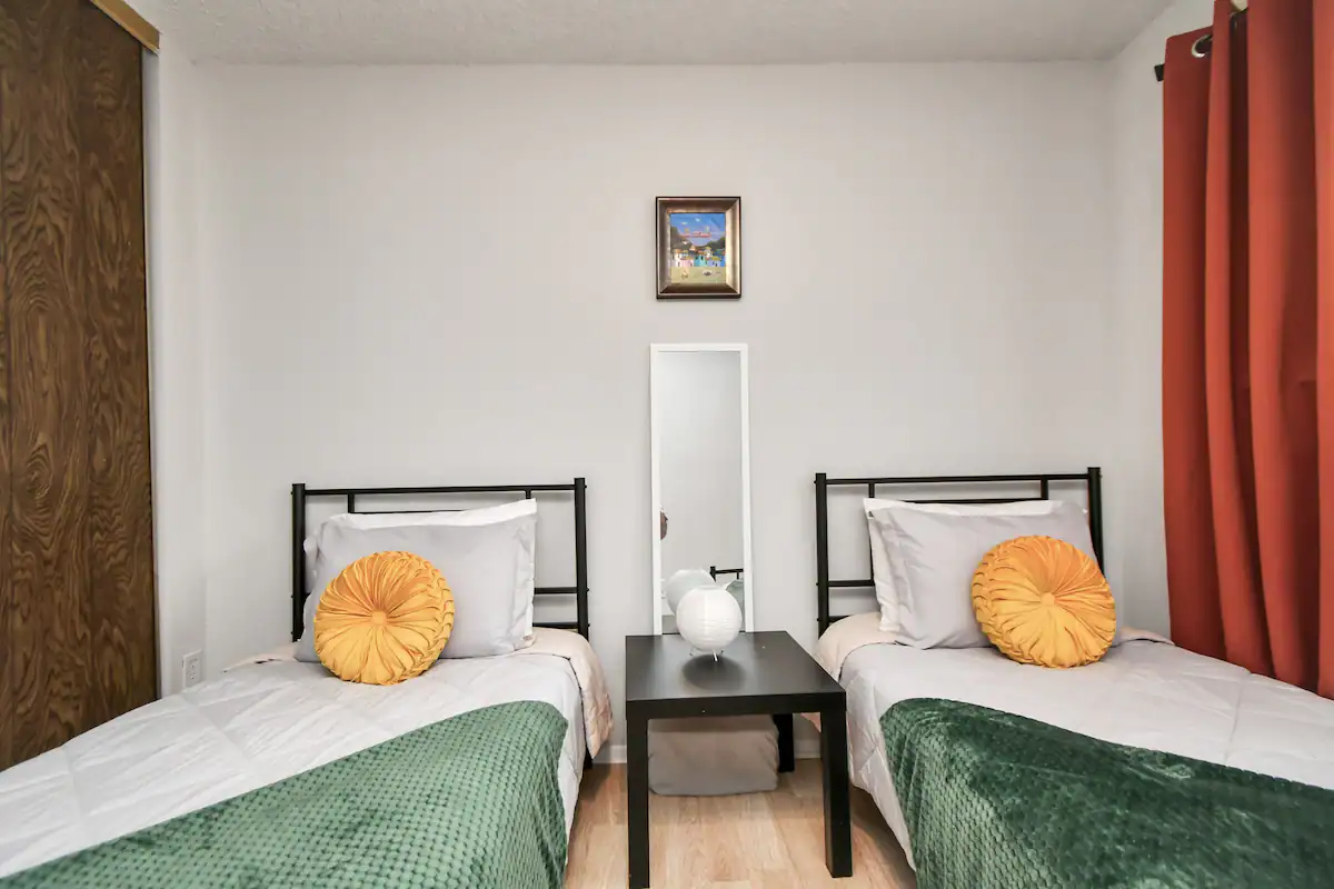The second bedroom has 2 queen beds, The third bedroom features 2 Twin beds. Air mattresses are stationed to accommodate extra guests.