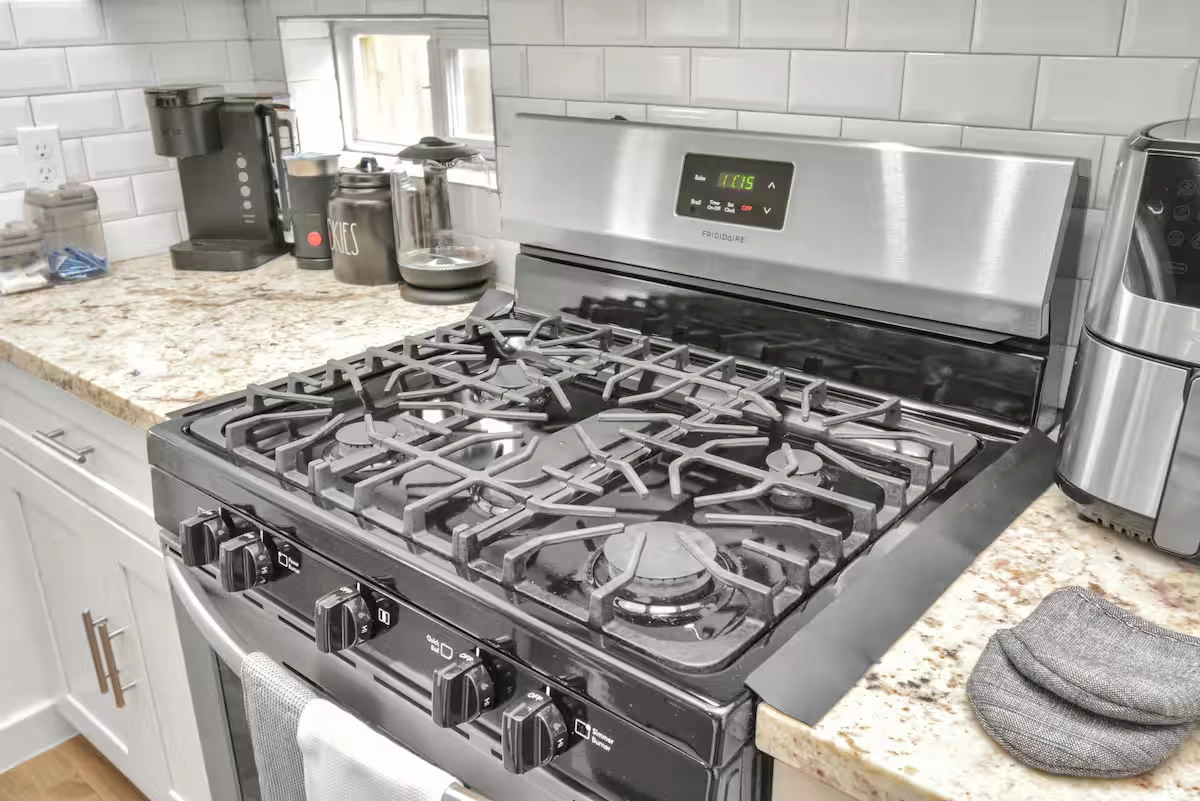 The kitchen is fully equipped with all the essentials you need to cook up a delicious meal during your stay, including a stove, oven, microwave, refrigerator, and dishwasher. You'll also find plenty of cookware, dishes, and utensils to use.