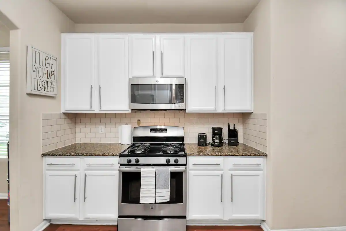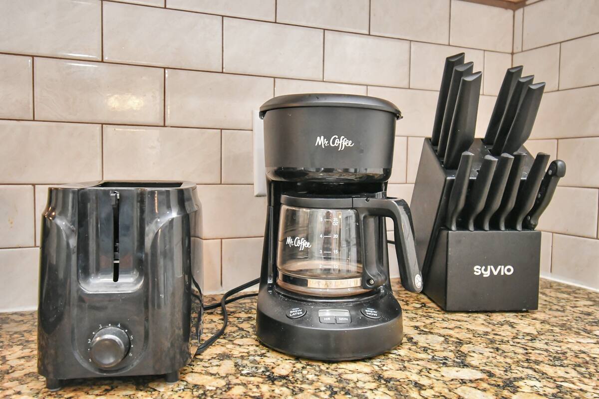 Kitchen: The kitchen is fully equipped with all the appliances that you need which include refrigerator, stove, dishwasher, coffee maker, dishes, pots and pans, etc.