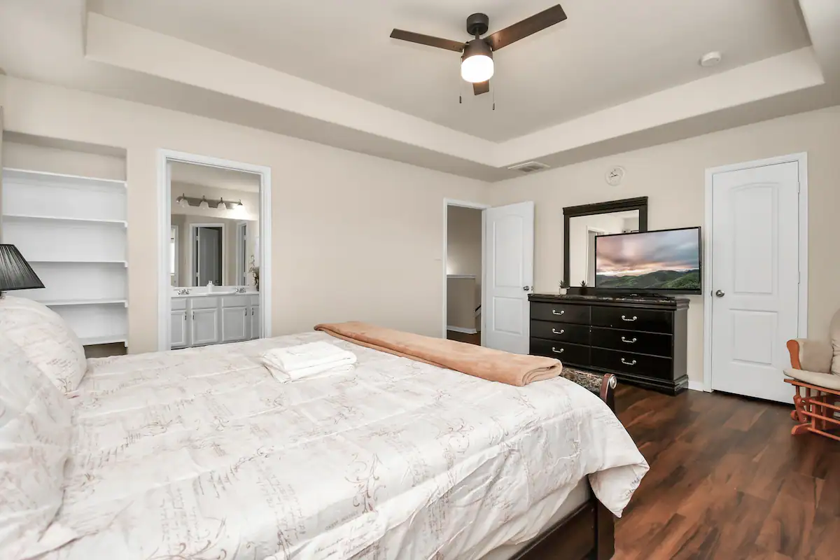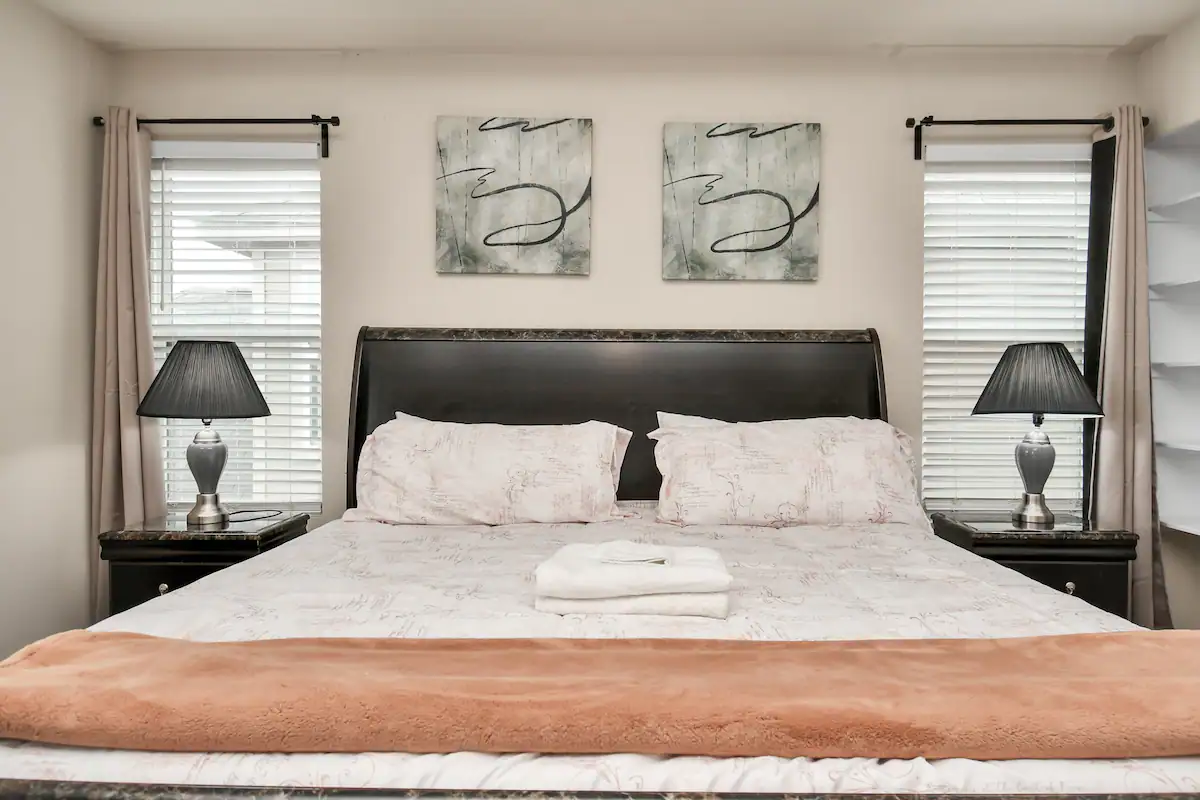 Main Bedroom: Features a super comfortable King size memory foam mattress There is also a smart TV in this room for added entertainment. There is also a private bathroom attached with a large walk-in shower and separate bathtub.