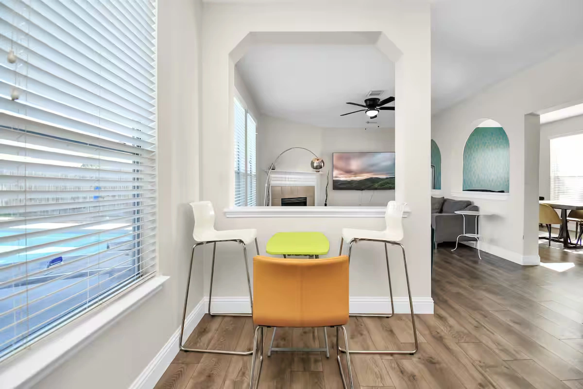 Open concept which leads to the pool area. Huge space outdoors. Rooms upstairs
